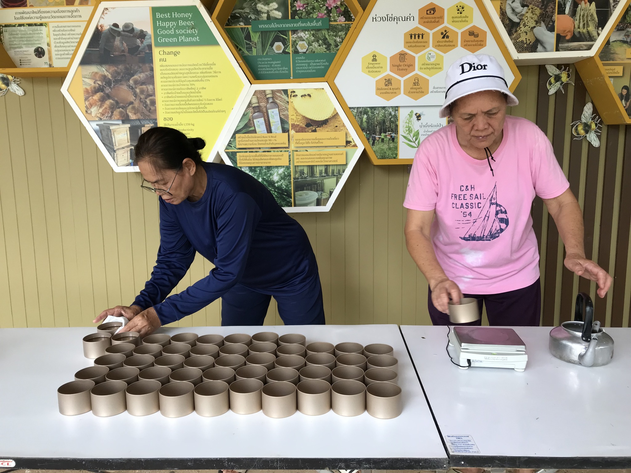 โดยส่งเสริมการสร้างอาชีพ เสริมทักษะให้กลุ่มแม่บ้านในอำเภอปะทิว จังหวัดชุมพร ผลิต Artisanal Products ด้วยมืออย่างปราณีต รังสรรค์เทียนหอมบำบัดจากไขผึ้งต้นทางและน้ำมันหอมระเหยบริสุทธิ์ กลิ่นยูคาลิปตัสและเสม็ดพืชอาหารชั้นดีของเหล่าผึ้งโพรงในสวนป่าเบญจพรรณของเรา ให้กลุ่มแม่บ้านสามารถสร้างรายได้ให้แก่ตนเอง มีศักยภาพในการจับจ่ายและรักษาสุขภาพ
